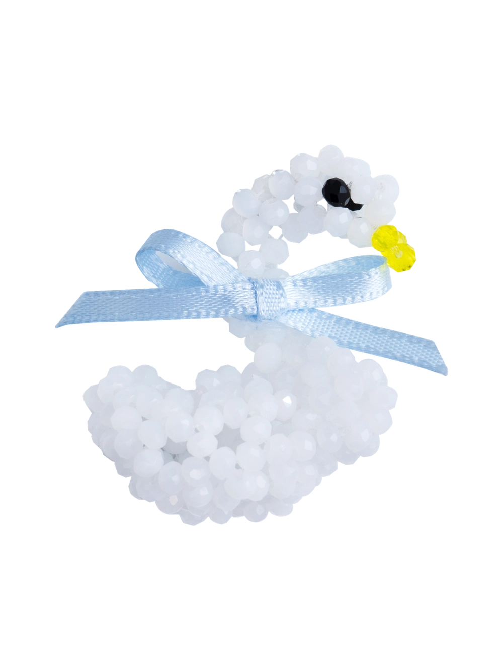 The lovely swan-shaped bead phone string features a pure white body with soft curves, adding elegance. The sky blue ribbon on its neck adds a cute touch. The swan and black swan are designed in opposite directions, and when placed facing each other, they form a heart. With its adorable size, it's perfect for adding a point of interest to your everyday items such as bags, AirPods, and wallets.
