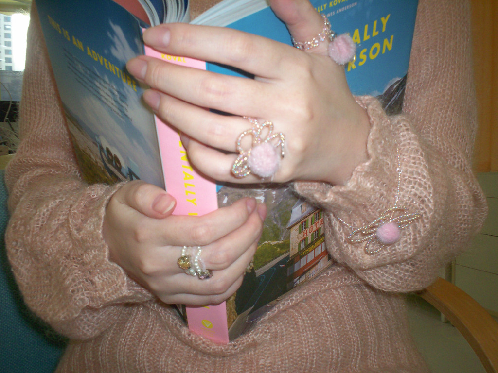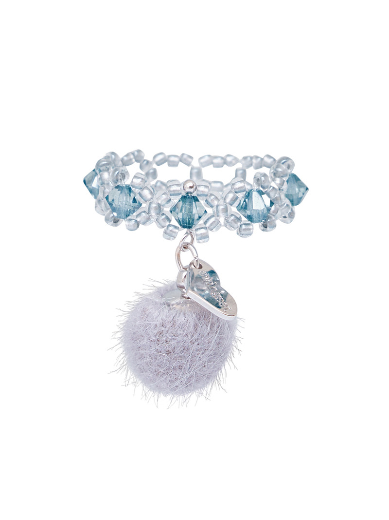 핸드메이드로 엮은 비즈 반지 밑에 털 방울을 달아 눈 내리는 모습을 담아보았습니다.