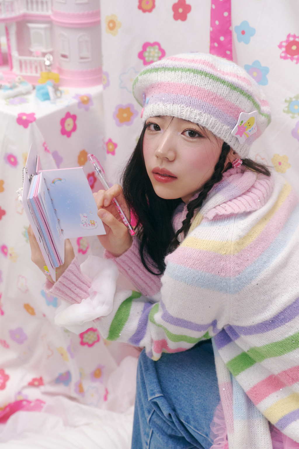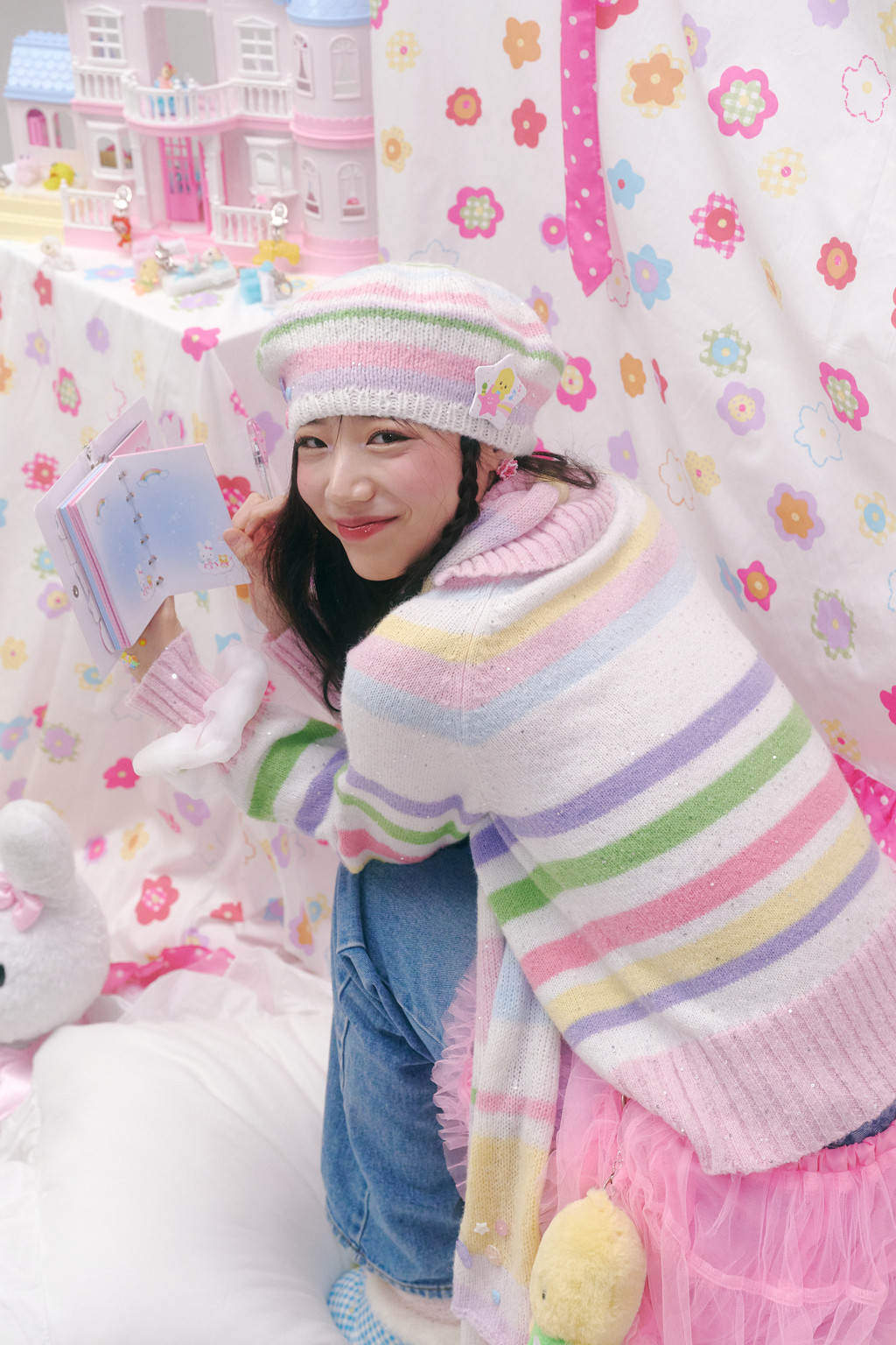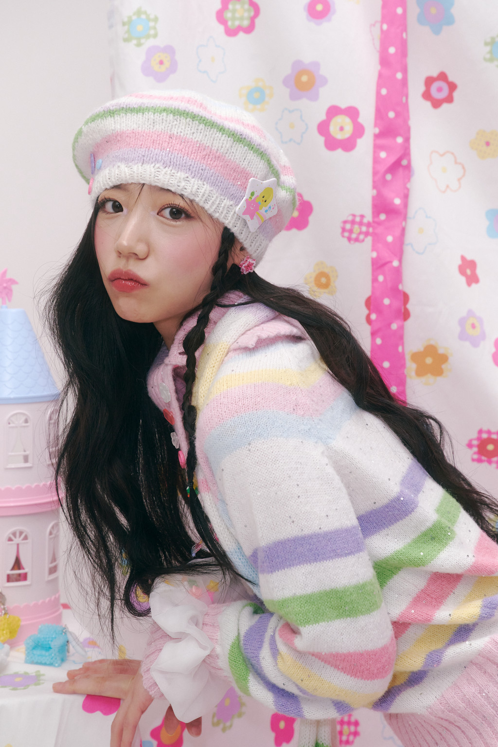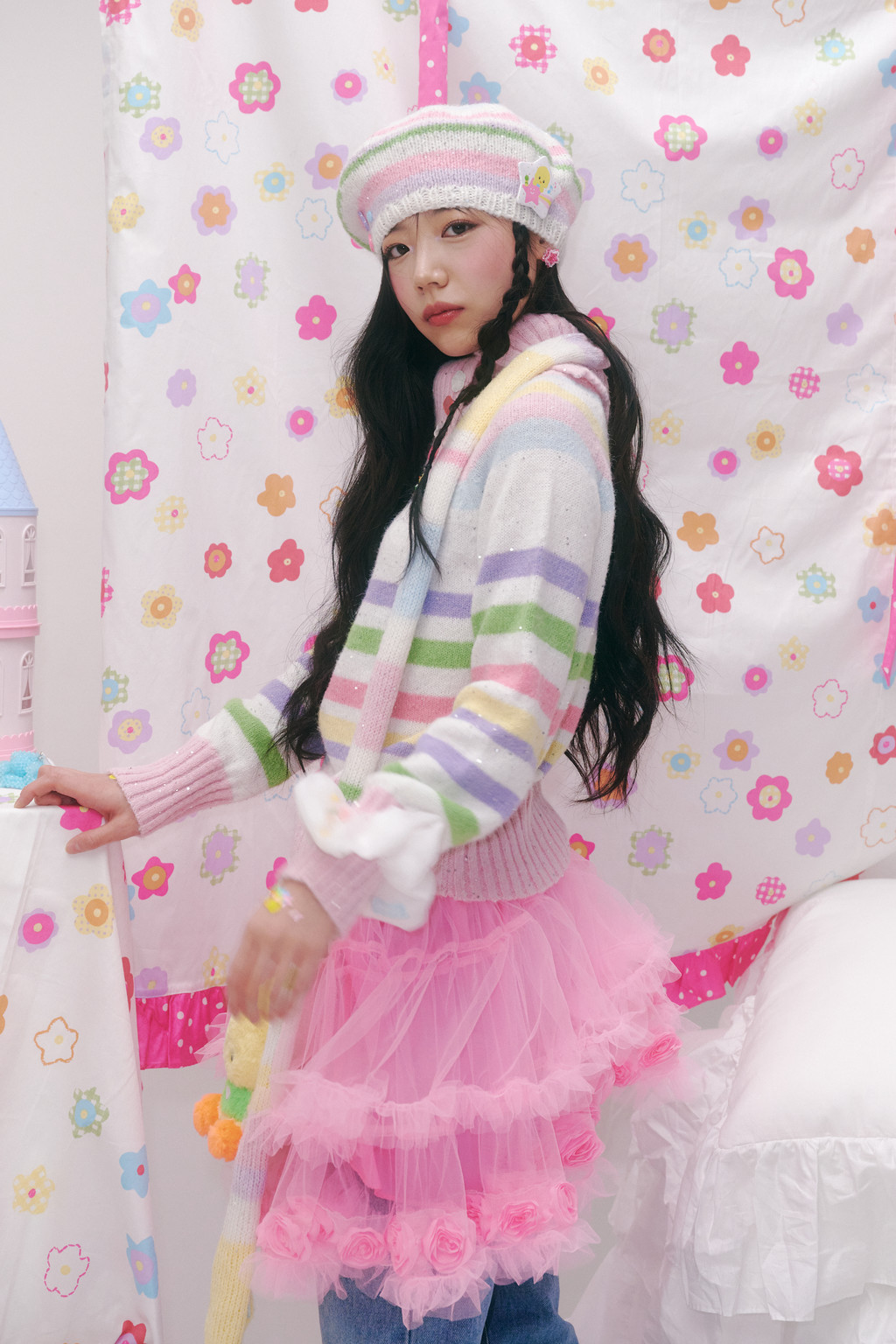 ♫ Features pastel-toned stripes in pink, yellow, cream, lavender, green, and sky blue, with sequins woven between the yarns for a more unique and special design