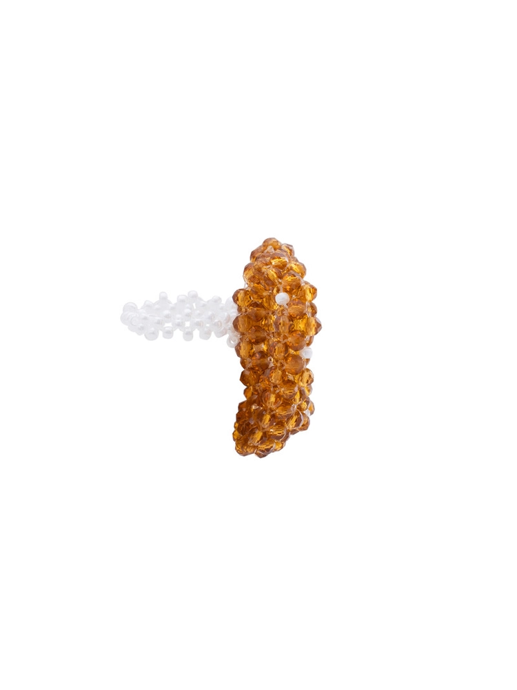 * Dyed crystal beads may have minor stains, scratches, or spots from the production process, and some color transfer may occur with moisture or friction. Because of the nature of bead craftsmanship, the shape or arrangement of beads may vary, and some pieces may appear eye-like. In particular, flatter designs may look uneven or stepped, with slight protrusions or indentations.
