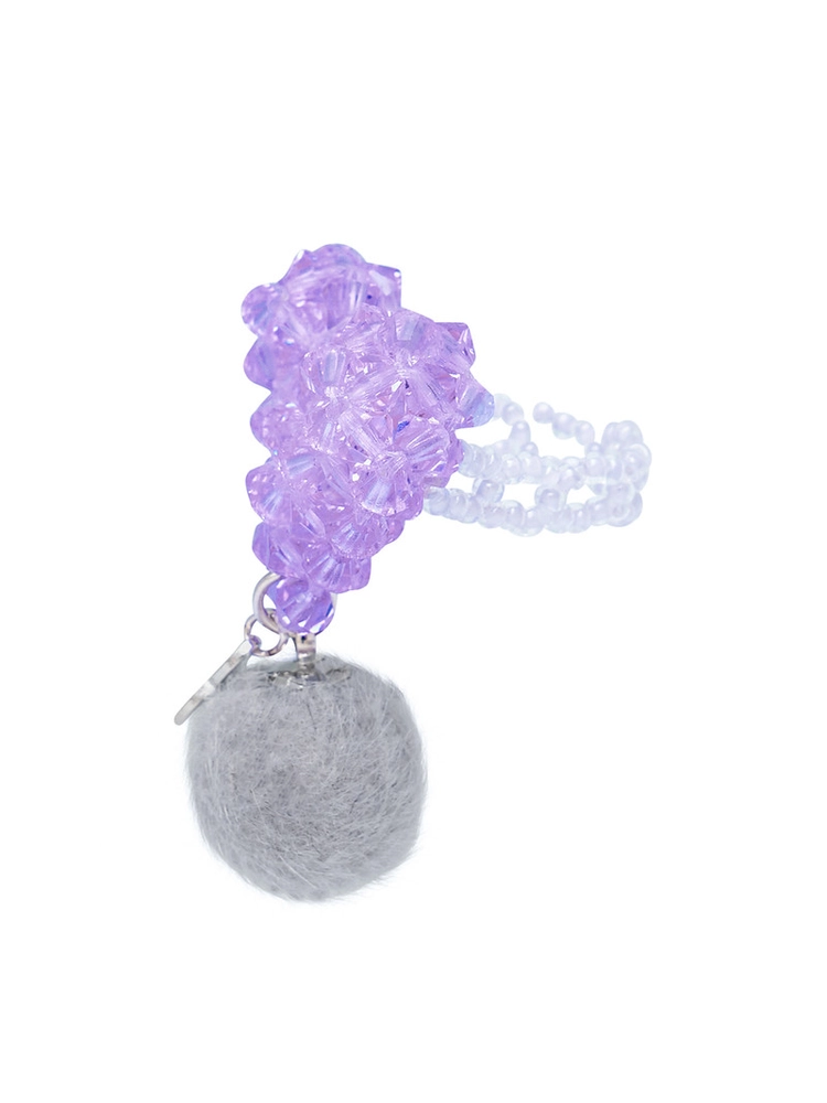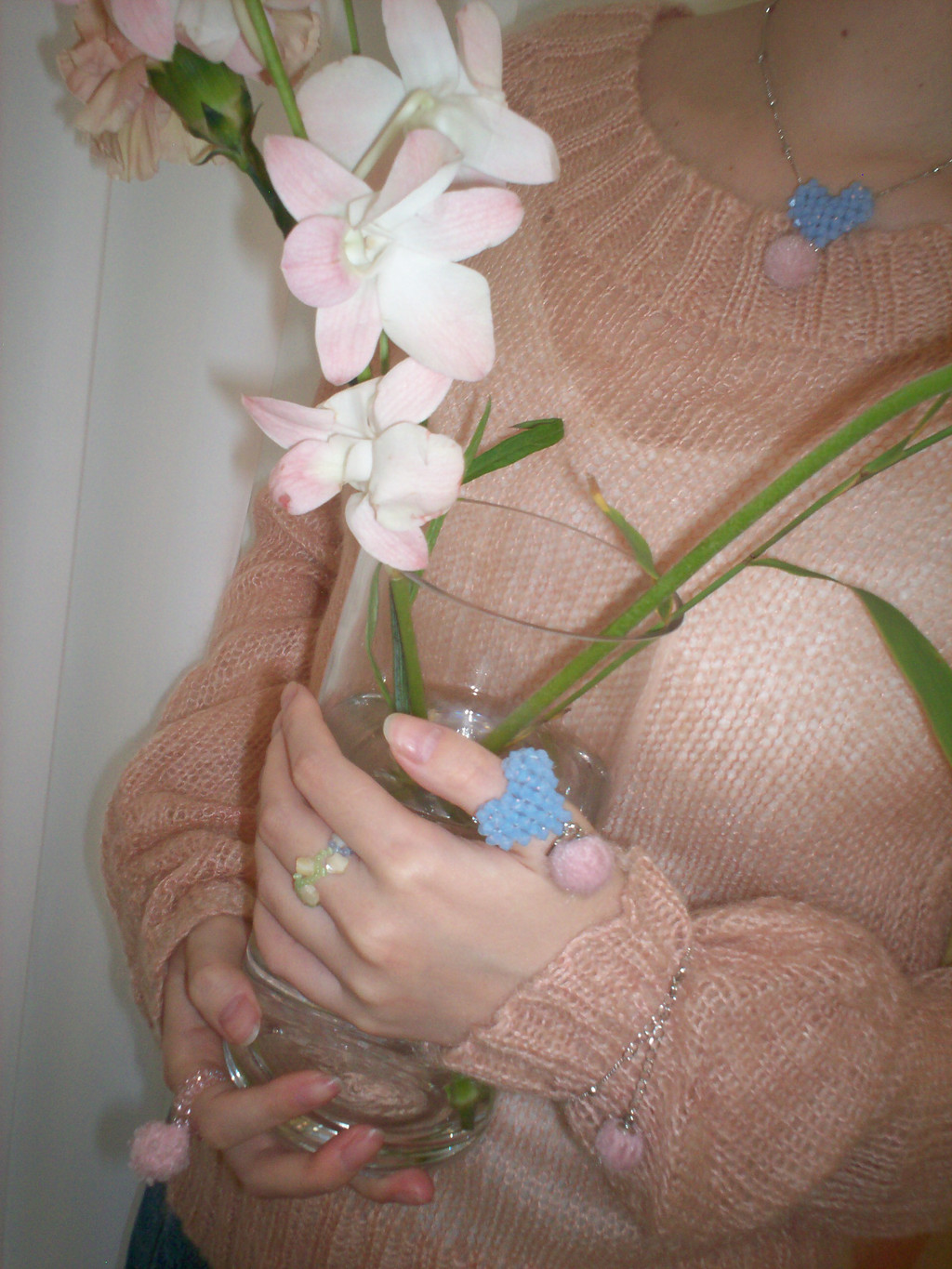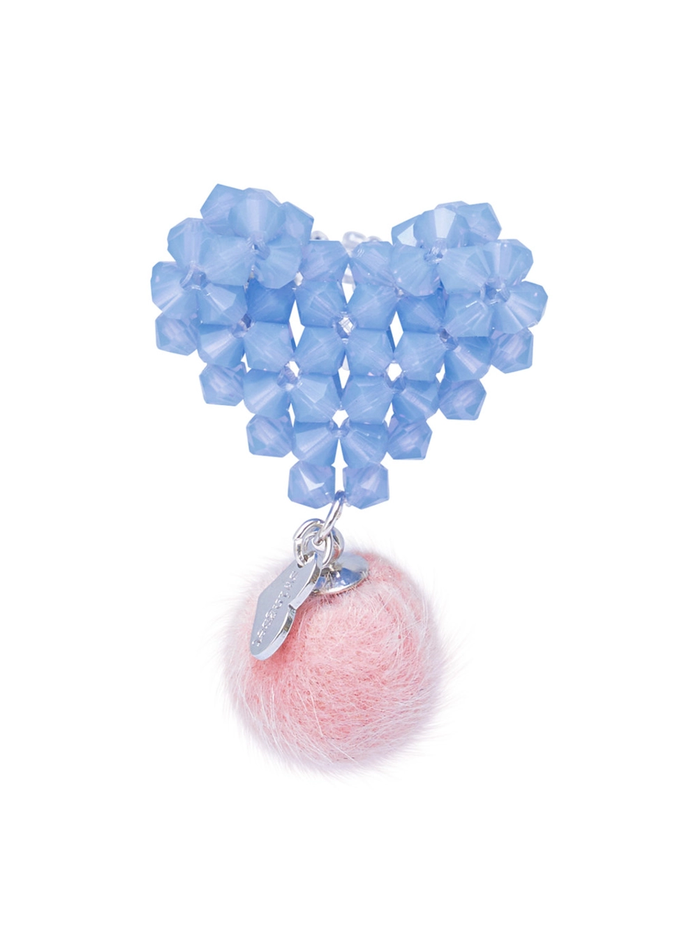 핸드메이드로 엮은 통통한 하트 아래로 털 방울을 달아 유니크함을 더해주었습니다.
