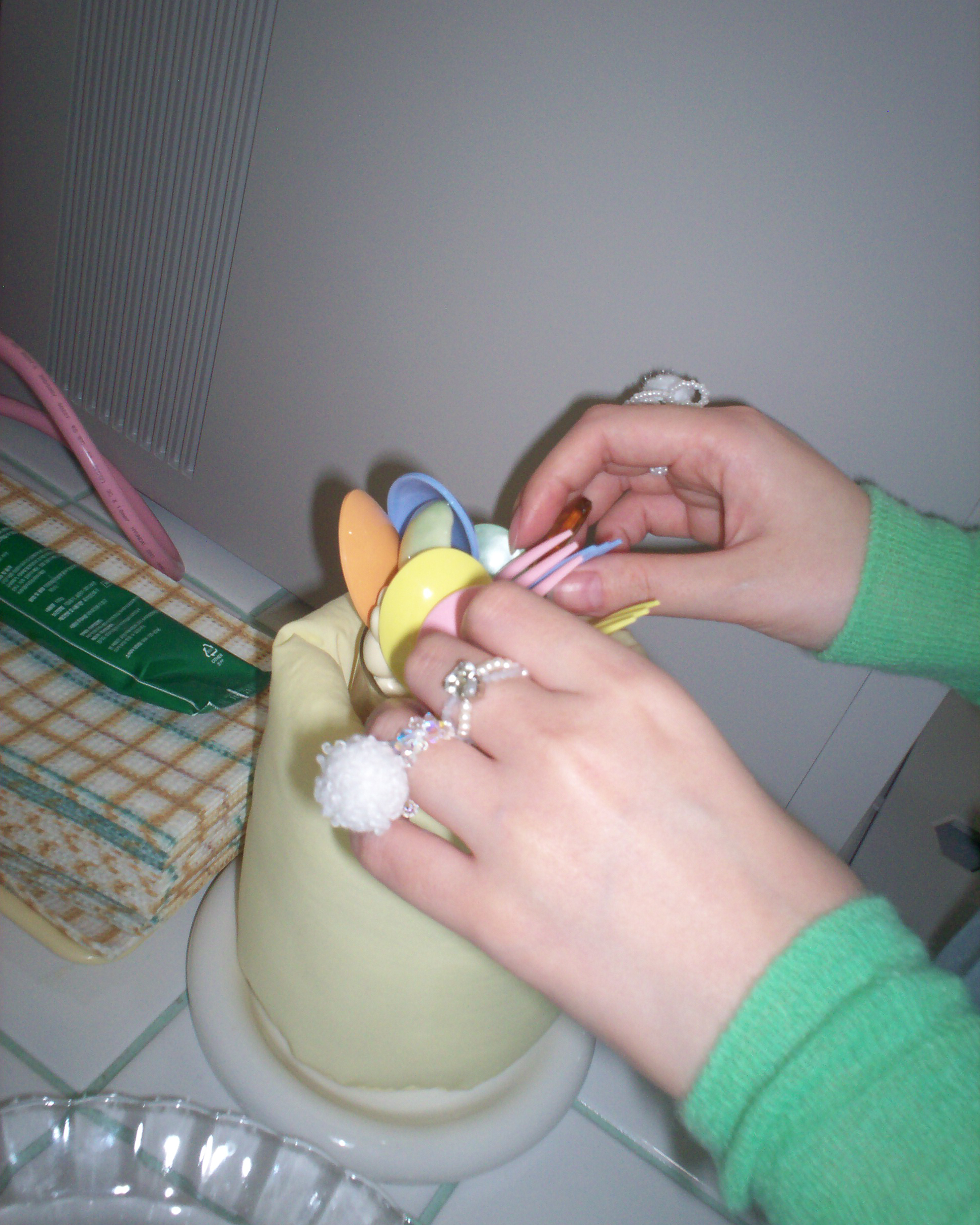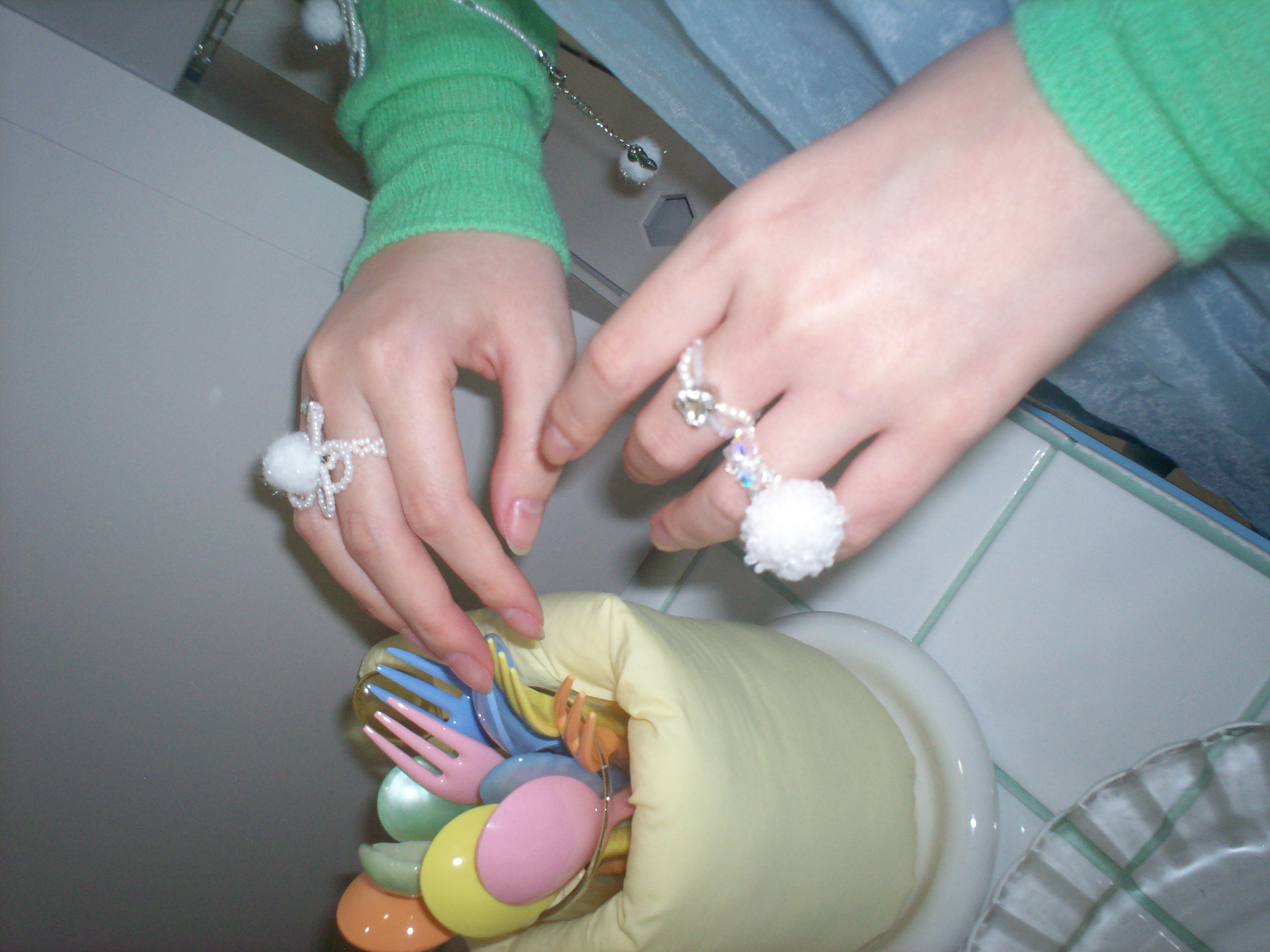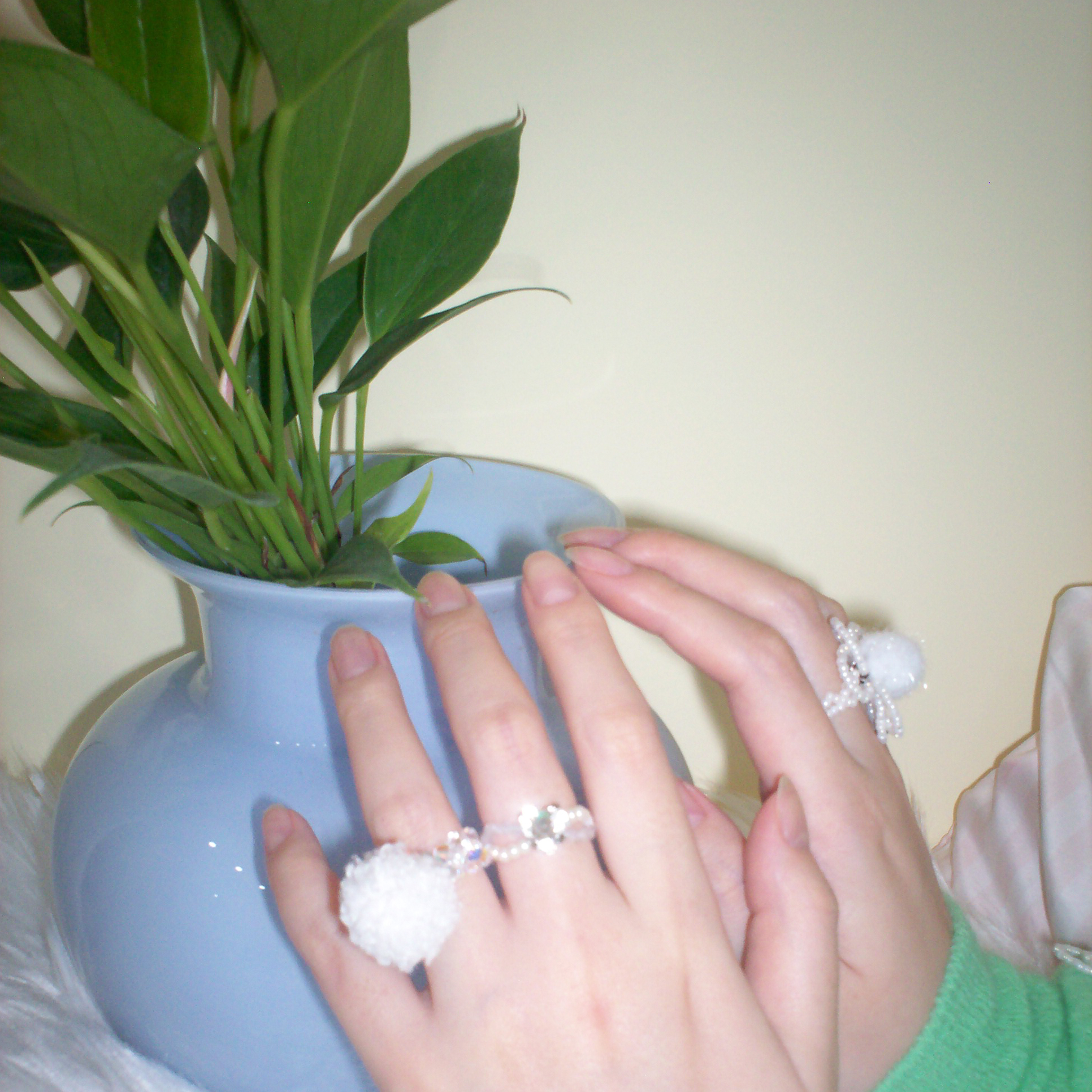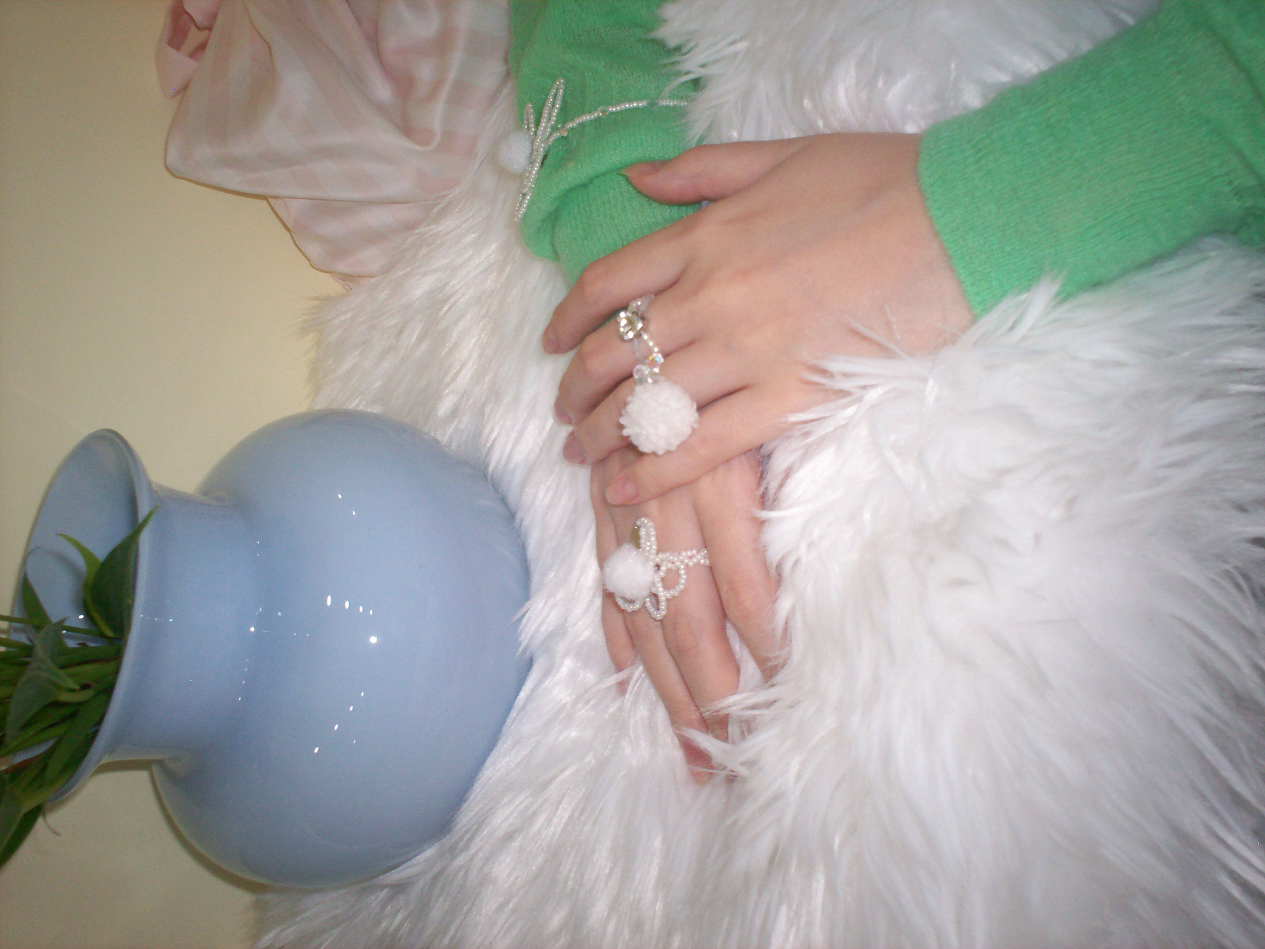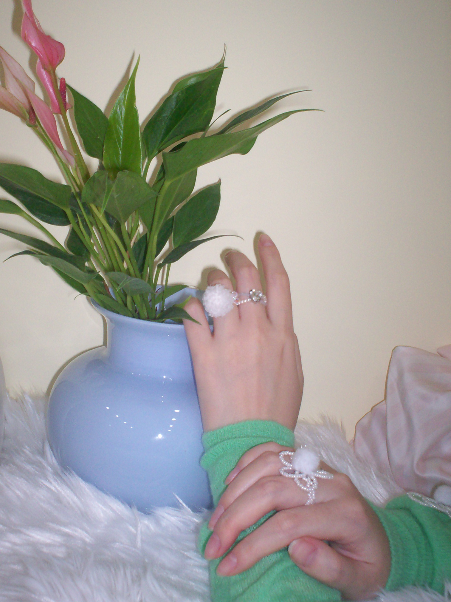 귀여운 양털 느낌의 방울들이 달려 있는 비즈 반지입니다.