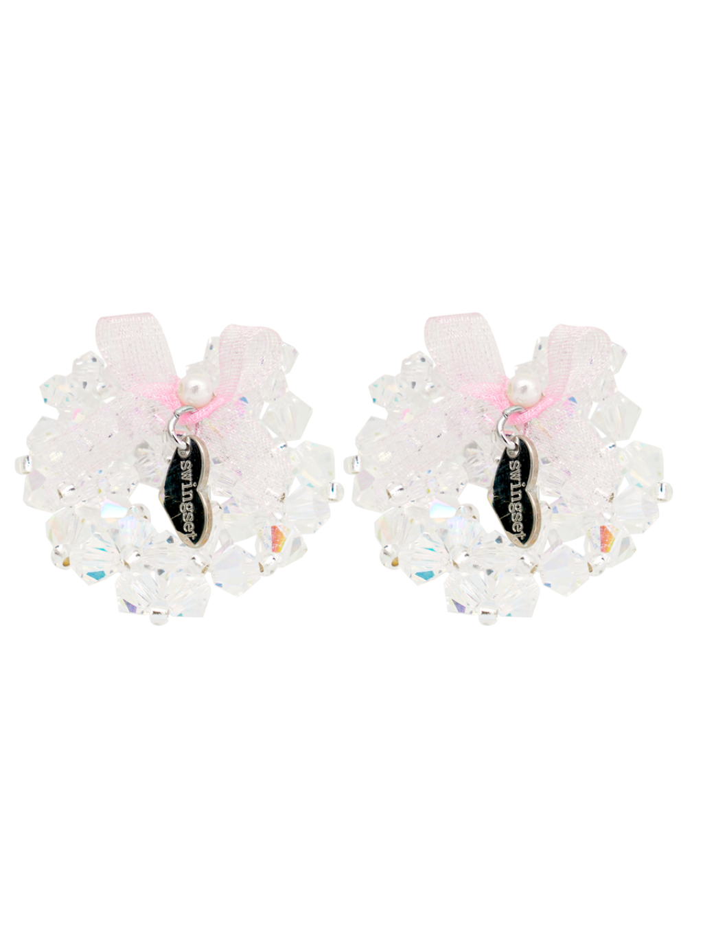 It is a lovely beads earrings made with pearls after layered with beads and organdy ribbons on top of a delicate open heart. The heart Swingset logo charm is point finished, making it even more lovely.
