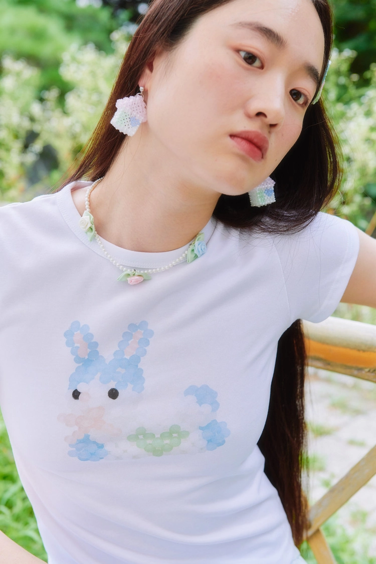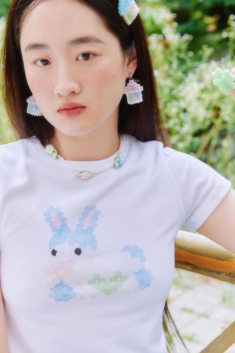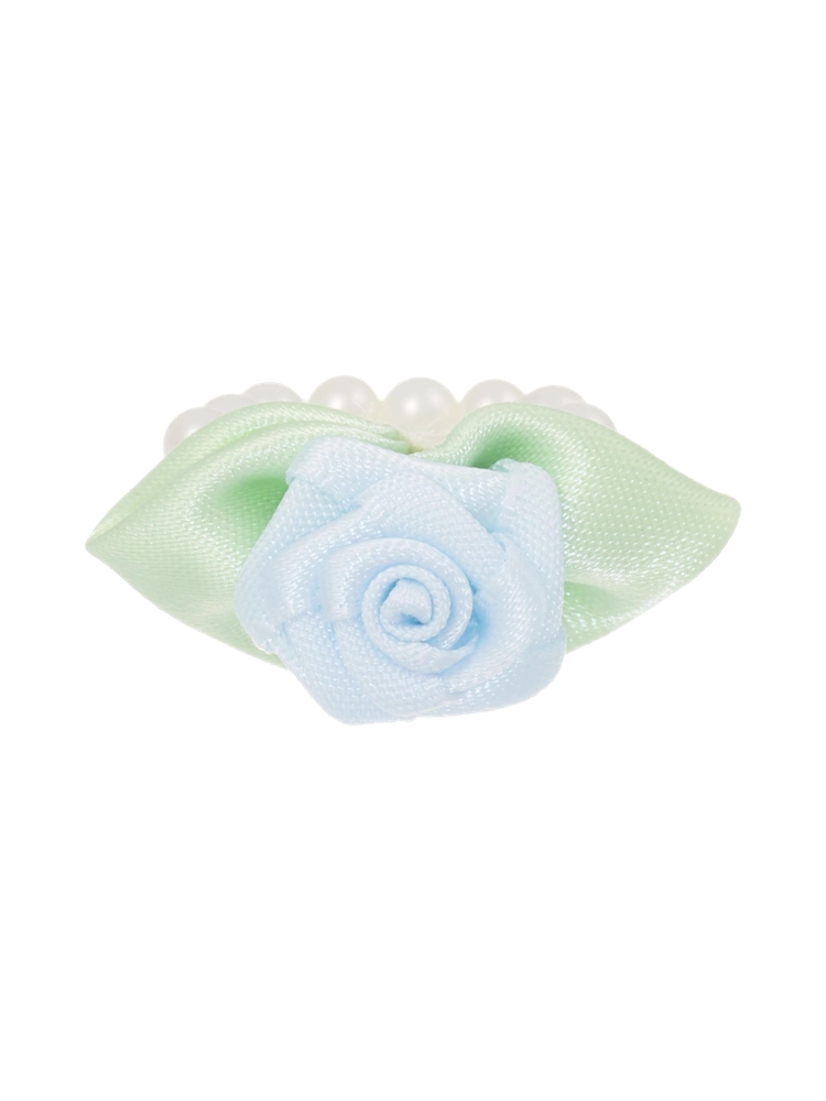A beaded ring adorned with a delicate rose, crafted from soft satin ribbon on an elegant nucleus pearl band.