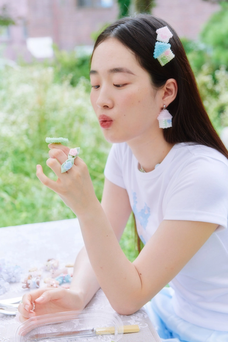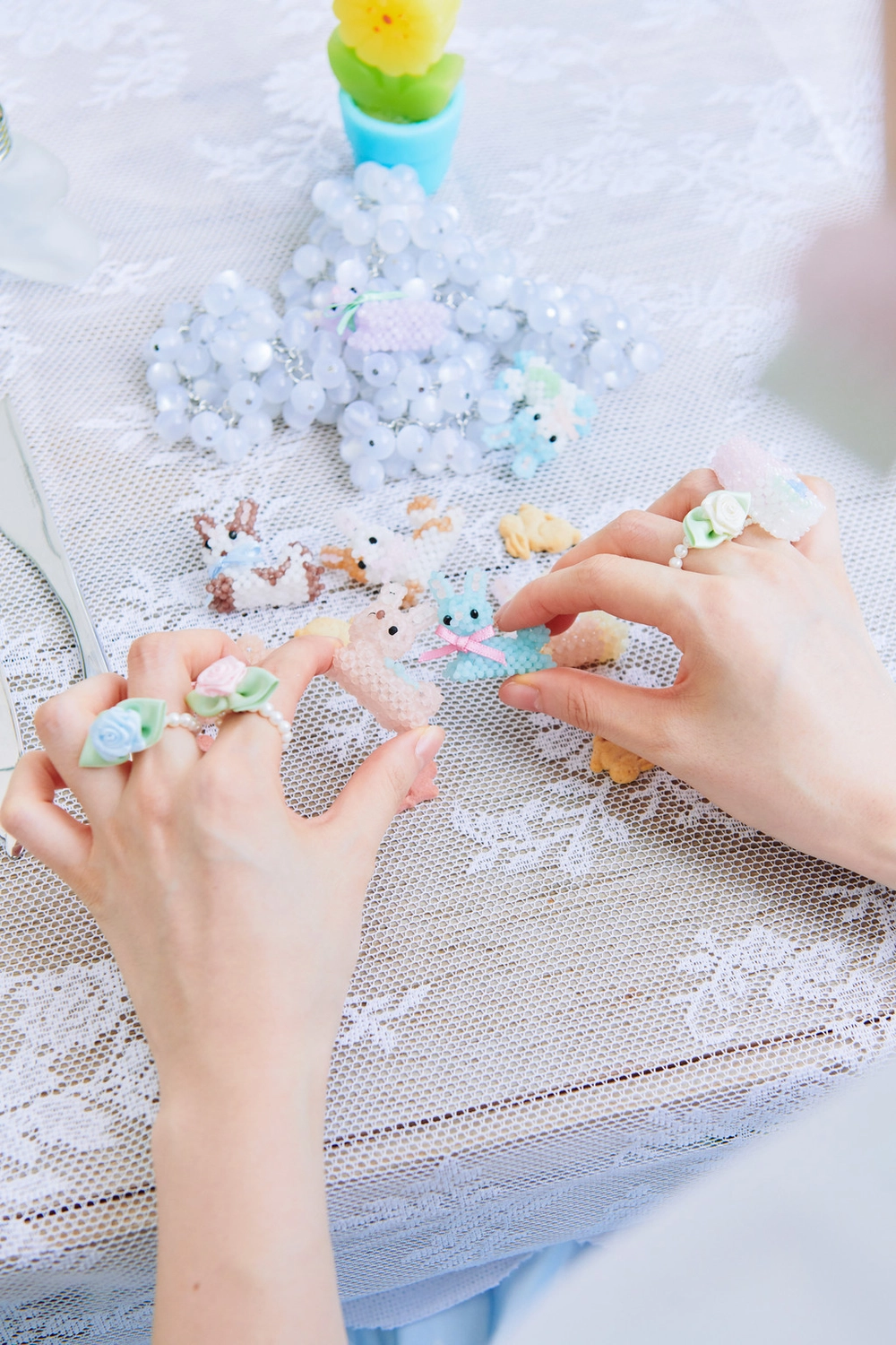 The pastel-toned rose is intricately detailed, adding a natural beauty to your finger.