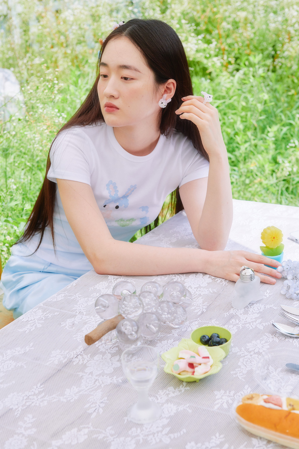 * Due to the design, the head ribbon does not fully touch the ears and may move; there may also be signs of knots, glue marks, or minor blemishes on the beads.