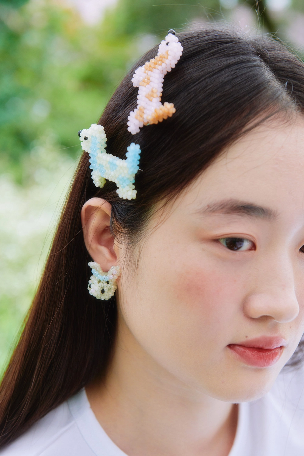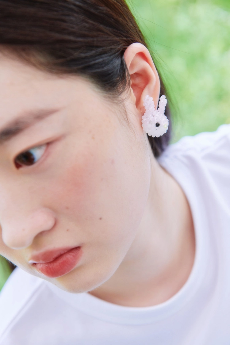 Rabbit Beads Earrings (Cream)