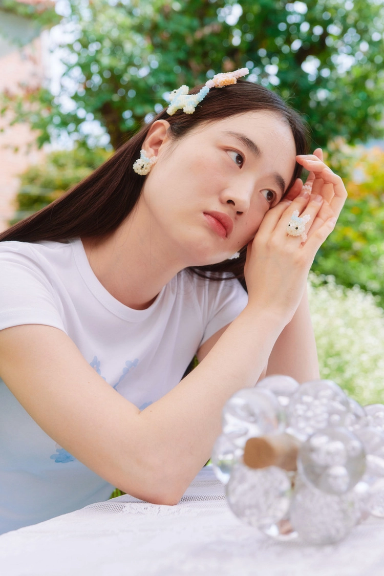 * Due to the design, the head ribbon does not fully touch the ears and may move; there may also be signs of knots, glue marks, or minor blemishes on the beads.