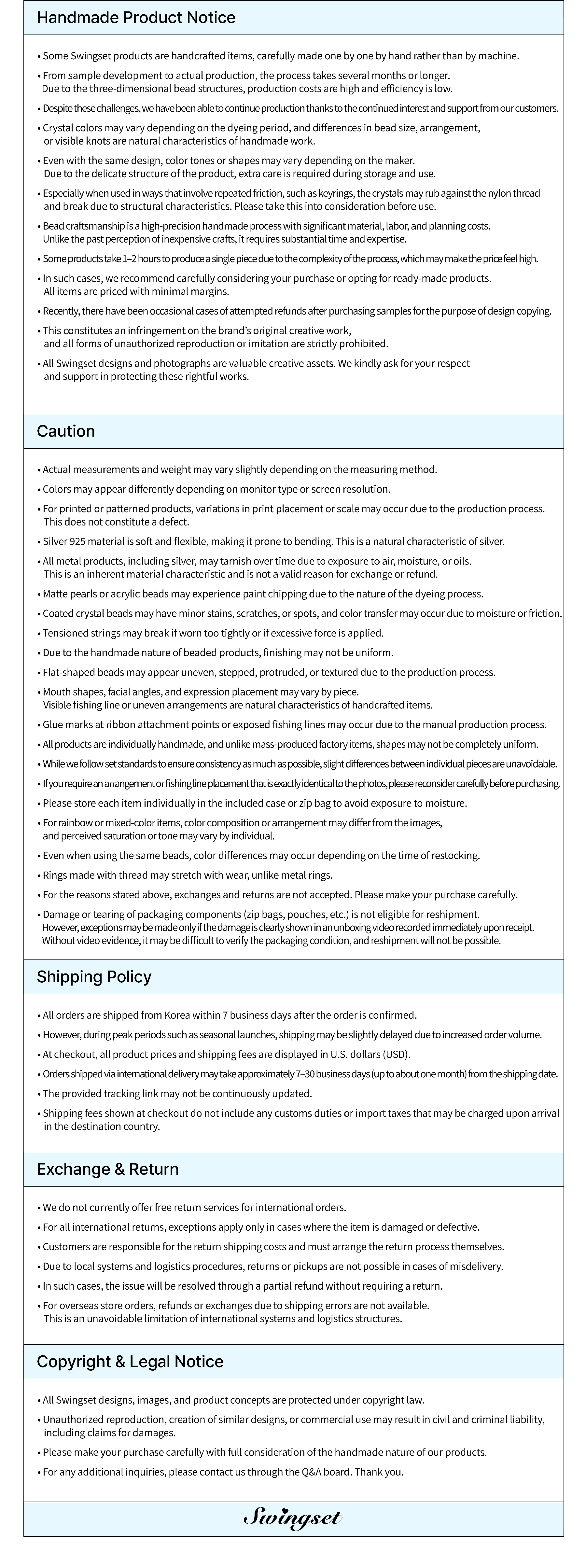 * Silver is sensitive to air, moisture, oil, cosmetics, and other external factors, and may naturally tarnish over time. This is an inherent property of silver and not considered a defect.