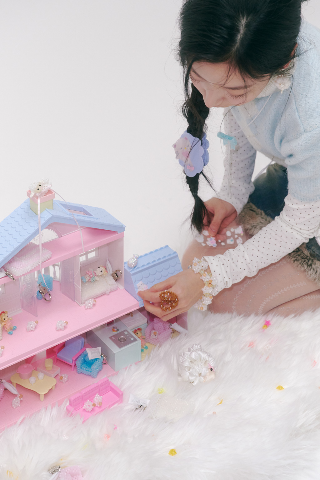 * Dyed crystal beads may show minor stains, scratches, or spots during the production process, and some color transfer may occur with moisture or friction. Due to the nature of bead craftsmanship, shapes or arrangements may vary. In particular, flatter designs may appear uneven, stepped, or show slight protrusions or indentations.