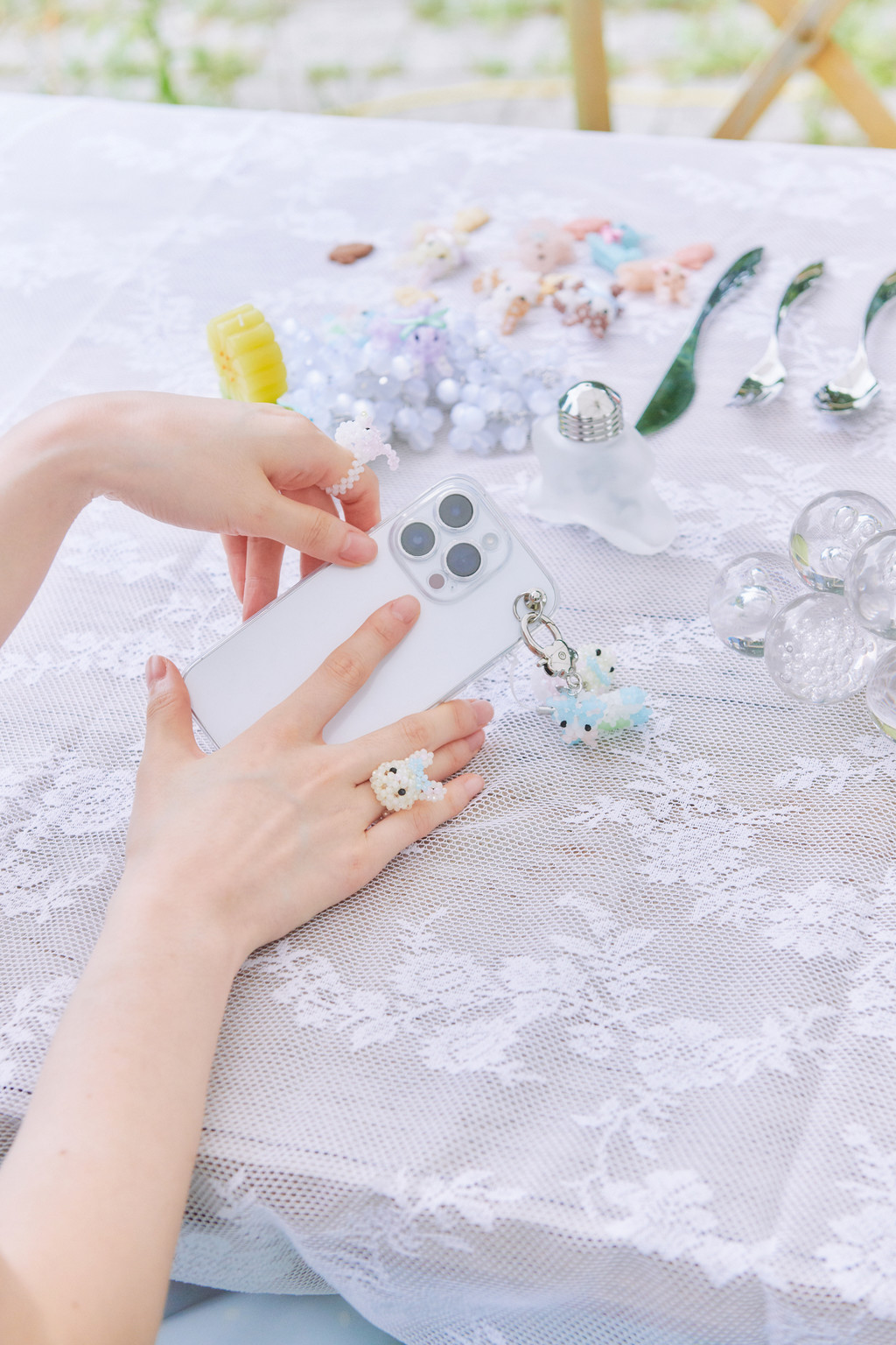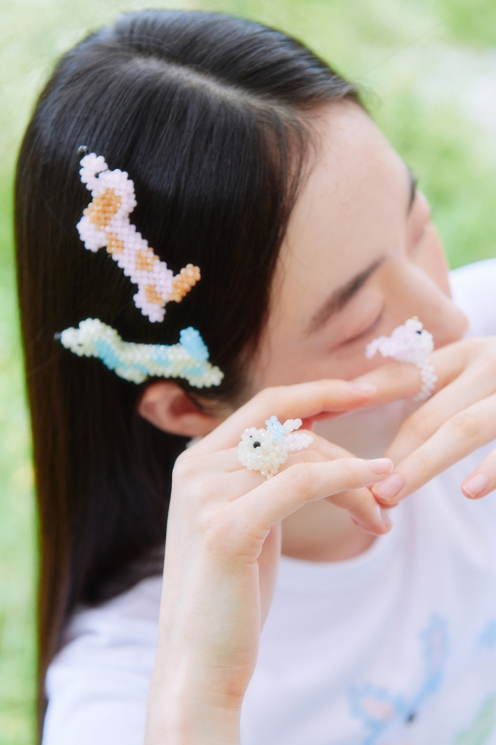 * Due to the design, the head ribbon does not fully touch the ears and may move; there may also be signs of knots, glue marks, or minor blemishes on the beads.