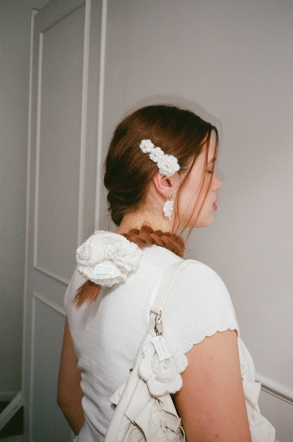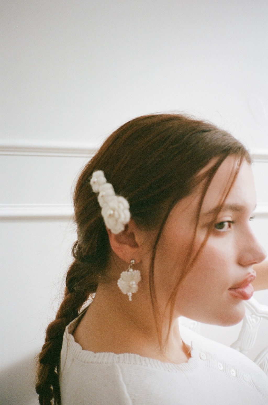 • Handmade hair pin featuring one triple-layered flower and two single-layered flowers