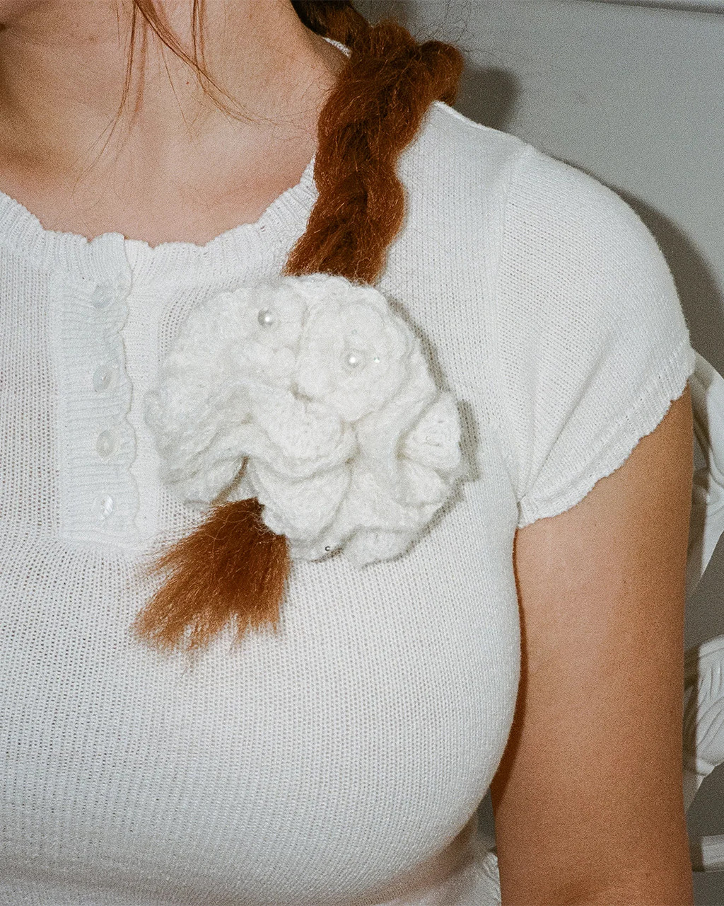 • Knit hair scrunchie featuring one triple-layered flower and two single-layered flowers