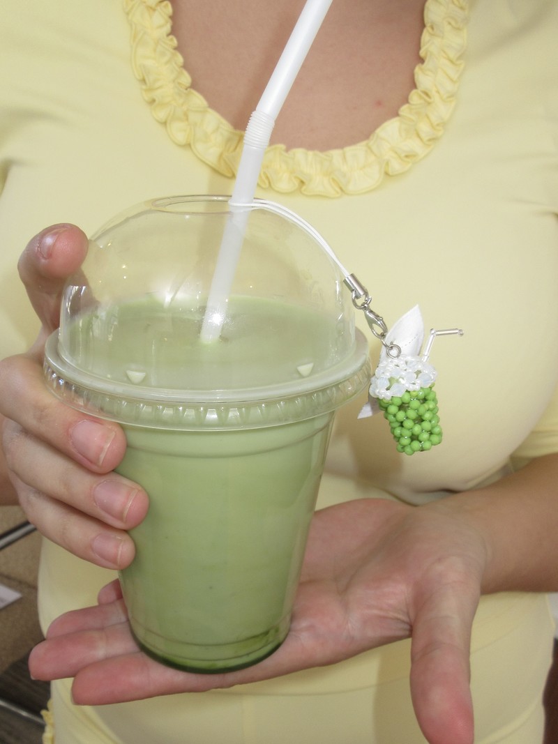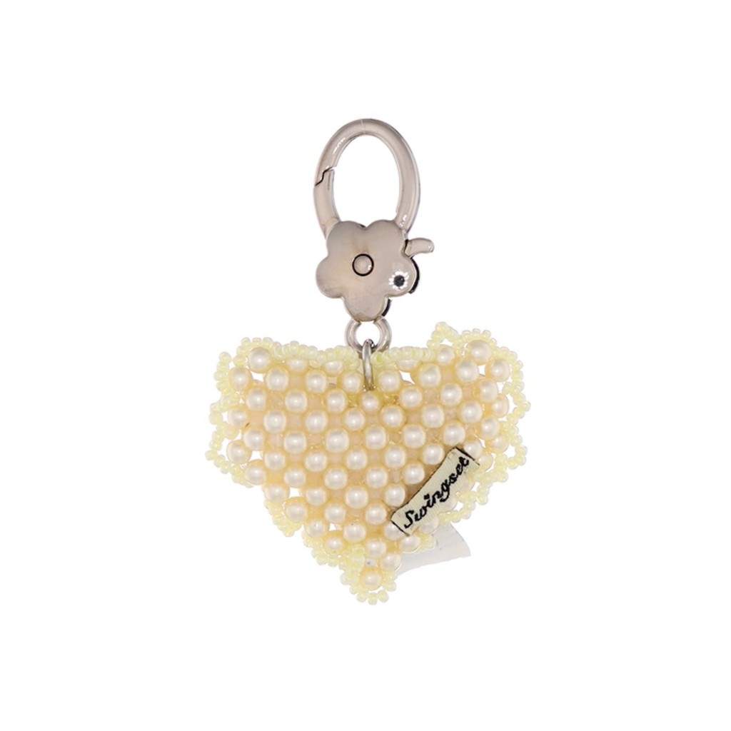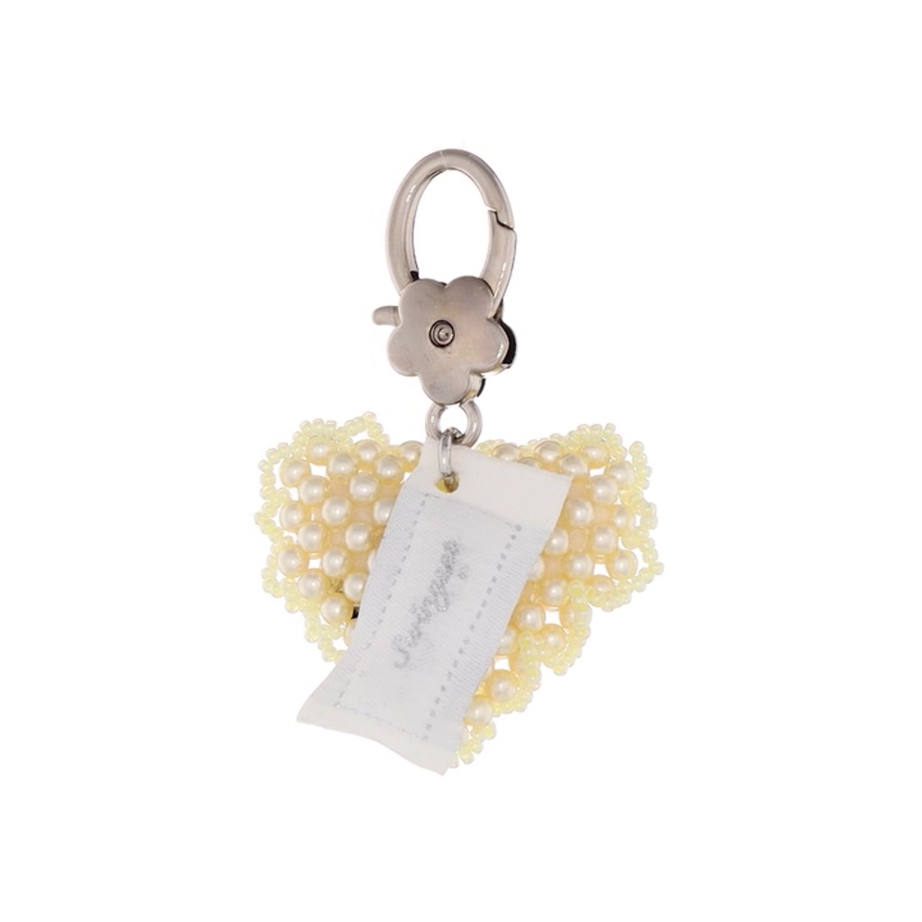 • A cushion-style heart key ring crafted with citrine-colored imitation pearl beads
