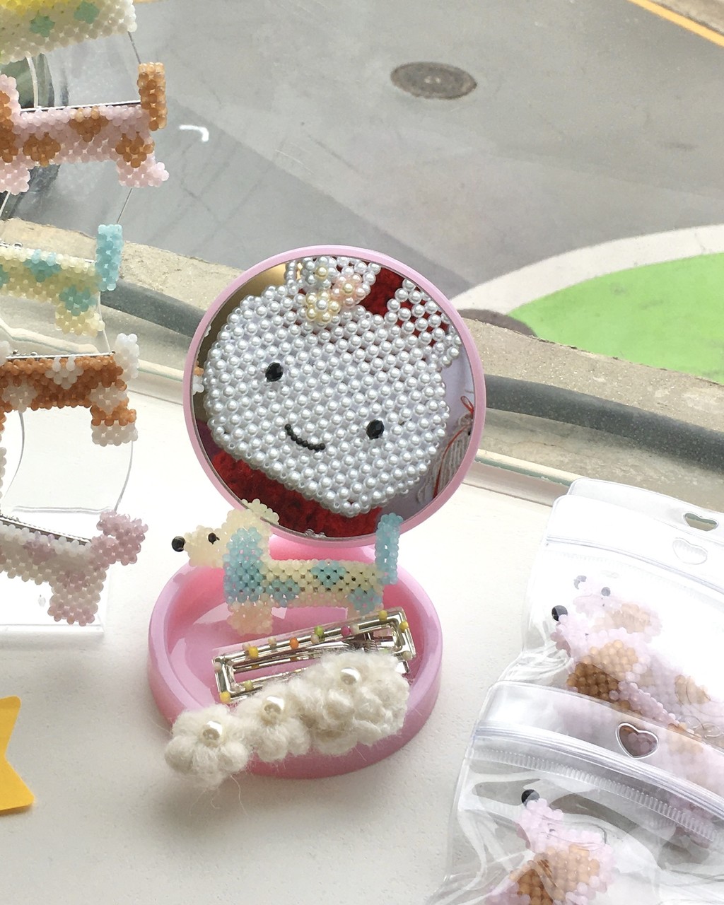 · Dyed crystal beads may have minor stains, scratches, or spots due to the manufacturing process, and color transfer may occur through moisture or friction. Due to the nature of beadwork, bead shapes and arrangements may be irregular, and some pieces may appear as if they have “eyes.” In particular, flat-shaped designs may have an uneven “stepping” texture, with some parts appearing raised or indented.