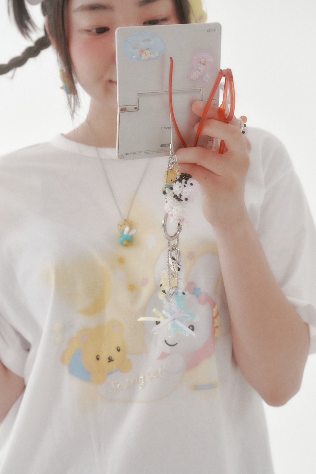 ♫ Celebrating the collaboration, this shaker-style design combines Swingset’s bead-inspired charm with Young Art’s adorable characters—beads and characters shake and move inside the sticker for a lively, playful effect