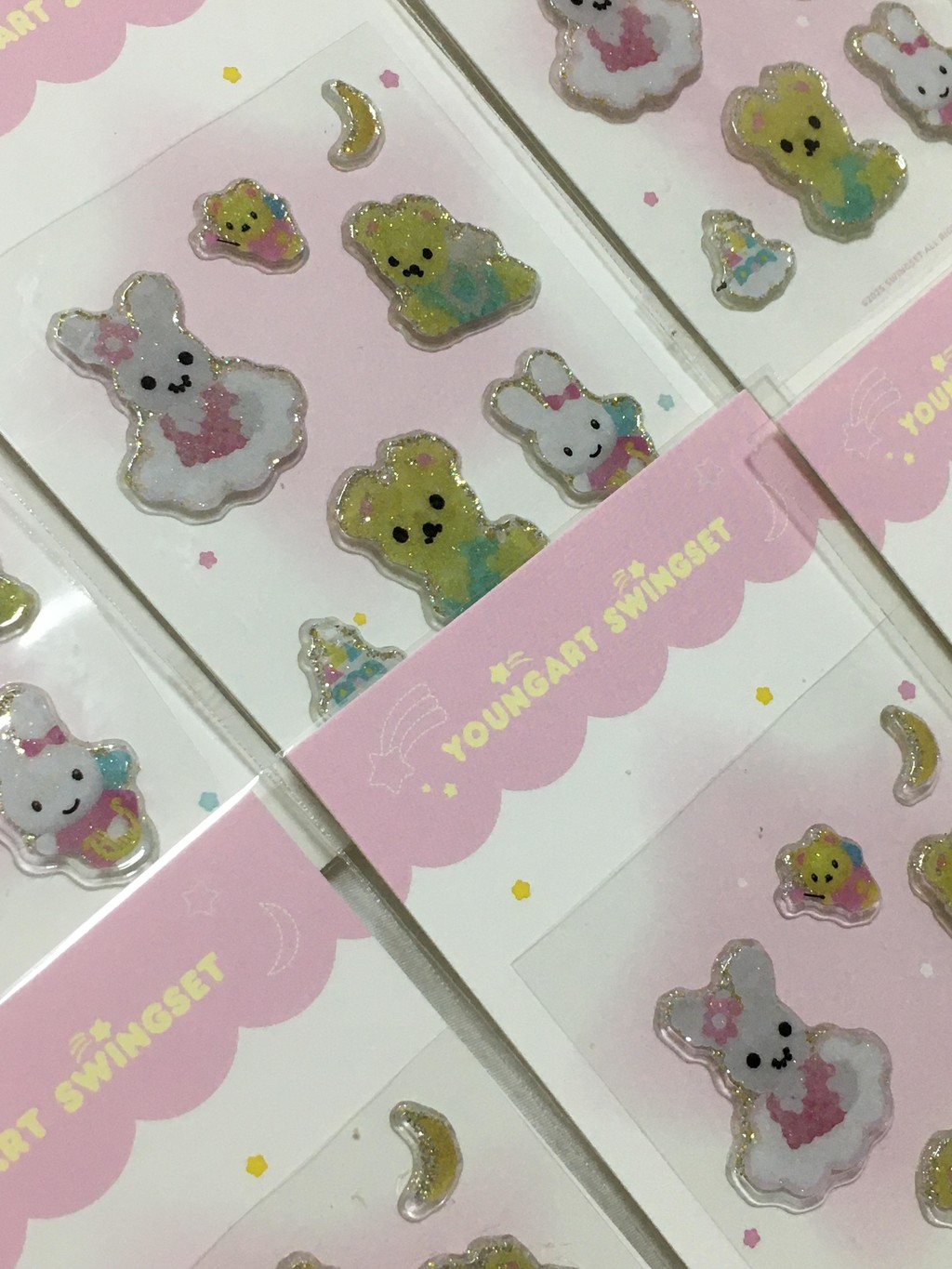 ♫ Swingset X Youngart collaboration hard-textured, three-dimensional gold glitter stickers